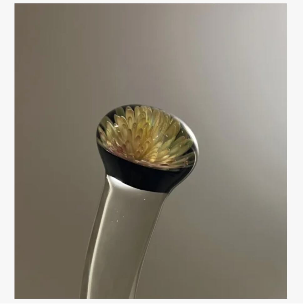 天然石のプレジャーワンドをマザーアースからの神秘の贈り物とするなら、このガラスアート内なる華シリーズは人が生み出す洗練された美しさ、エレガンスをテーマとしています。この世界には神様がもともと与えてくれている自然の美しさと、人が長い間かけて技を磨き生み出す芸術という2つの美が存在します。