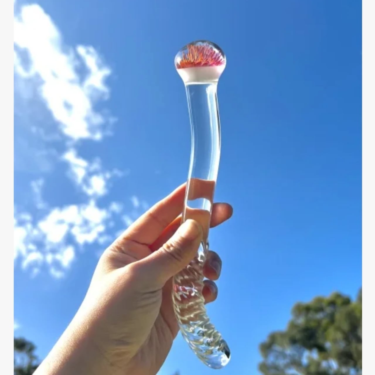 このマッサージワンドは両サイドの形状が異なり、球状のサイドは子宮頸の緊張を取り除き、波状の細いサイドではGスポットを刺激します。